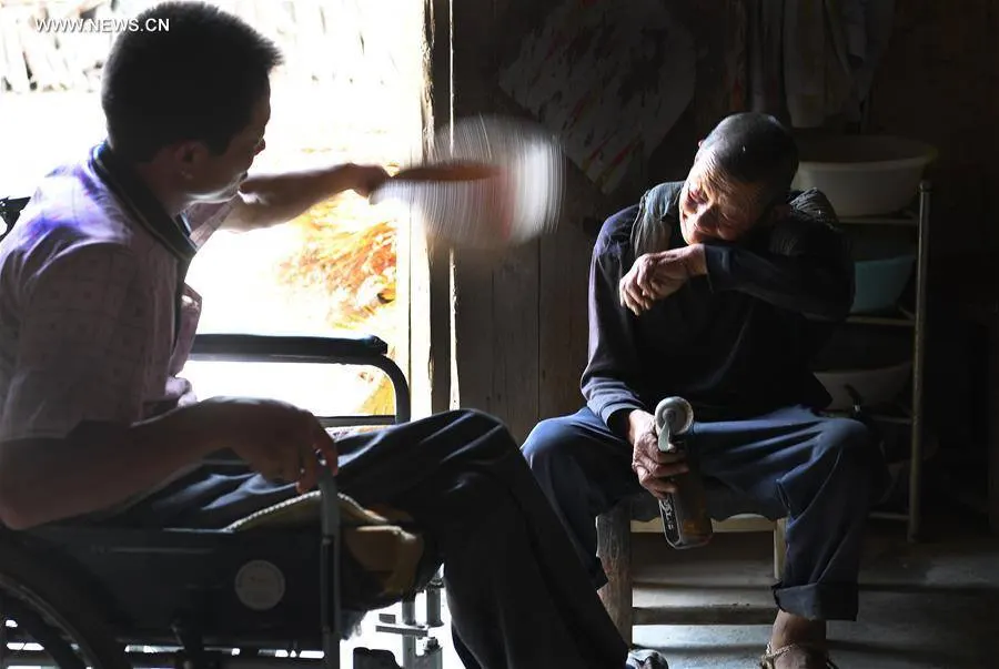 เหอ หย่งตี้ คุณพ่อวัย 79 ปี ทำหน้าที่ดูแล เหอ เสวียอี้ ลูกชายคนเดียวซึ่งประสบอุบัติเหตุขณะทำงานอยู่ในเหมืองเหล็กของมณฑลเหอเป่ยเมื่อปี 2539 จนกลายเป็นอัมพาตไม่สามารถทำงานเฉกเช่นคนปกติมานานกว่า 21 ปี ในหมู่บ้านเหอซินของอำเภอหลิวสุ่ย เมืองอันคัง มณฑลส่านซีทางภาคตะวันตกเฉียงเหนือของจีน