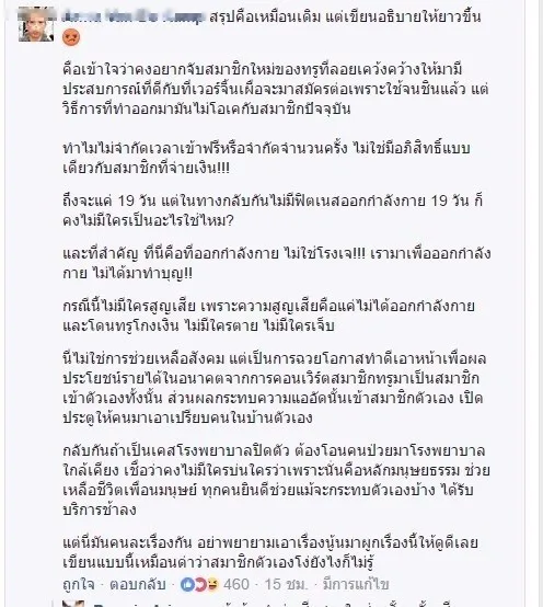 Virgin fitness ประกาศเยียวยาเมมเบอร์ทรูฟิตเนสให้เล่นฟรี แต่ผิดคาด โดนสมาชิกปัจจุบันถล่มเละ
