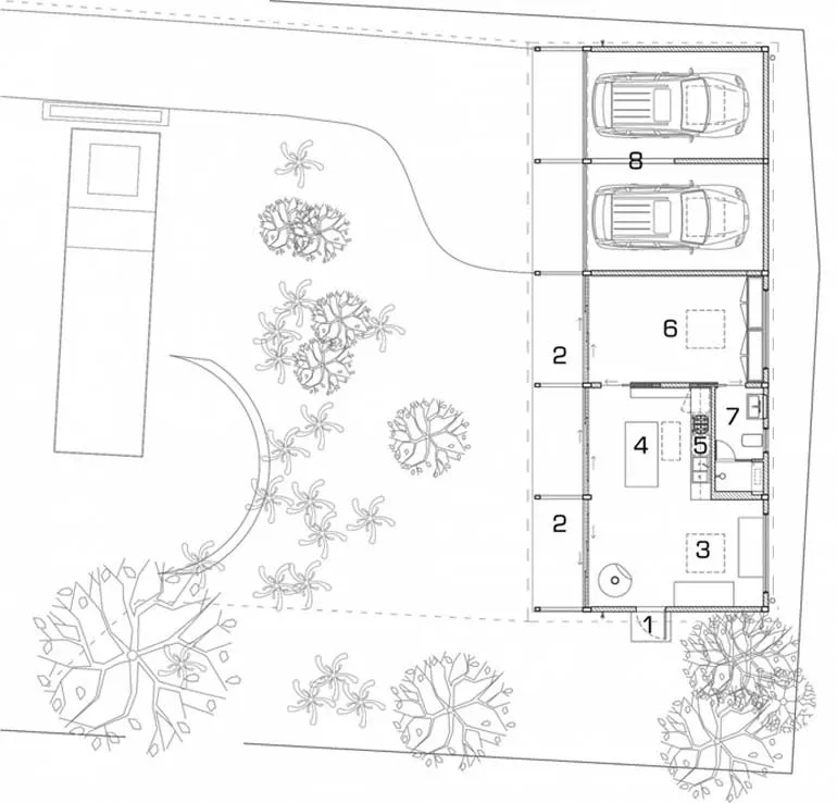 ห้องหับถูกแบบออกเป็นสัดส่วน ทั้งห้องนั่งเล่น ห้องครัว ห้องรับประทานอาหาร ห้องน้ำและห้องนอน ด้านข้างยังออกแบบให้มีที่จอดรถขนาด 2 คันด้วย โดยทุกๆ สััดส่วนของตัวบ้านนั้นถูกออกแบบให้เชื่อมต่อถึงกันทั้งภายนอกและภายในเลยทีเดียว บ้านสวยหลังนี้นักออกแบบระบุว่ามันเป็นบ้านสำหรับคู่รักหนุ่มสาวโดยเฉพาะครับ