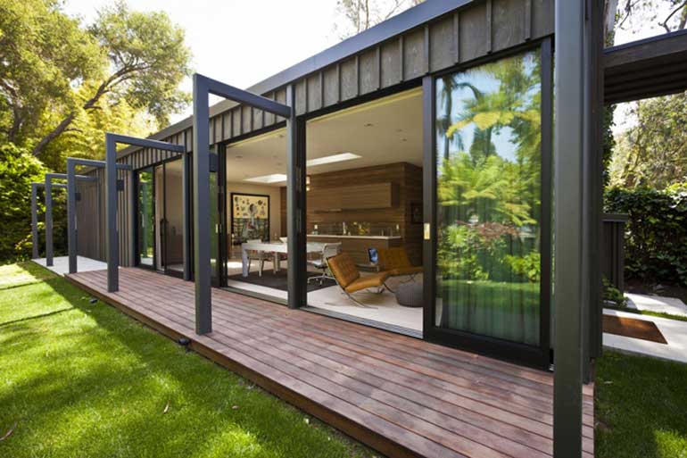 นี่คือแบบบ้านสวยชั้นเดียว ชื่อว่า Santa Monica Residence มันถูกออกแบบโดย Jendretzki บ้านหลังนี้ตั้งอยู่ที่ ซานตาโมนิกา แคลิฟอร์เนีย สหรัฐอเมริกา สร้างเสร็จไปเมื่อปี 2012 โดยบ้านนั้นออกมาแบบตามแรงบันดาลใจของลูกค้า ตัวบ้านเป็นรูปทรงกล่องสี่เหลี่ยมเรียบง่าย ใช้โทนสีเข้มที่ภายในอก ดูมีความโมเดิร์น ผสมผสานการใช้งานโครงสร้างเหล็ก ไม้ และกระจกเข้าด้วยกัน ส่วนภายในนั้นมาในโทนสีขาวตกแต่งด้วยพื้นไม้สีอ่อน และแซมผนังด้วยงานไม้ดูสวยงามลงตัวมากๆ