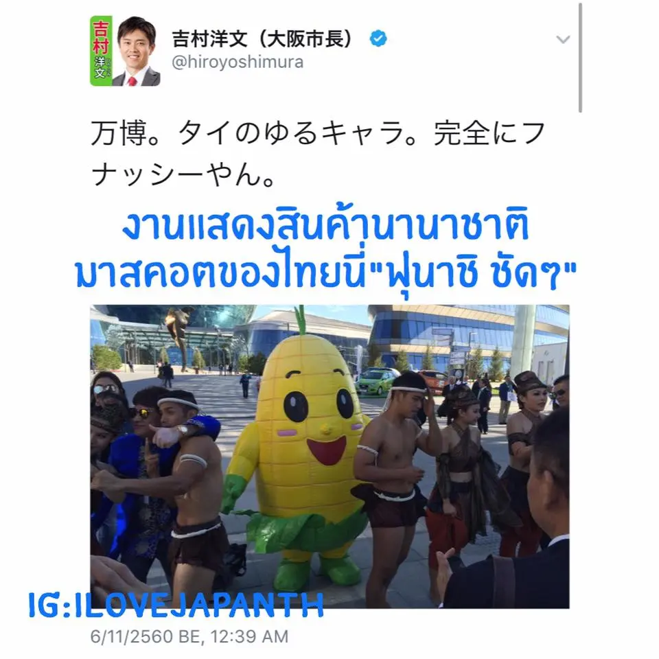 ท่านผู้ว่าฯเมืองโอซาก้าออกมาทวิตว่า น้อง"มาสคอตข้าวโพด"ของไทยเหมือนมาสคอตของญี่ปุ่น