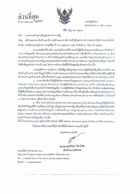กรมบัญชีกลางส่งหนังสือด่วนที่สุด!เรื่องการตรวจสอบฐานข้อมูลบุคลากรภาครัฐ ข้อมูลของตนเองและบุคคลในครอบครัวผ่าน website