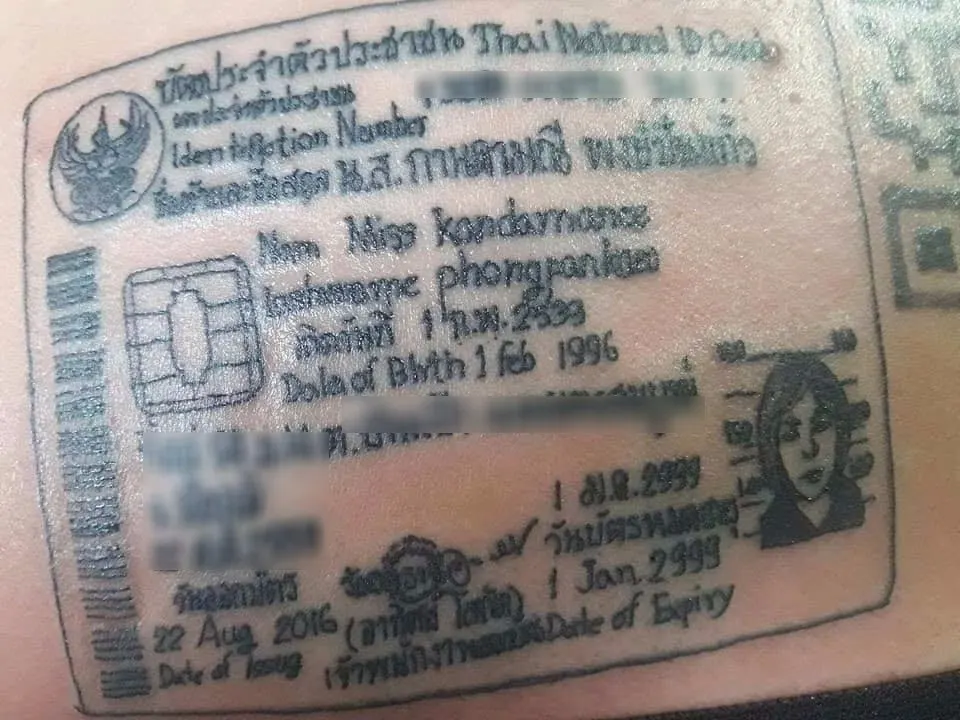 สาวไทยกับรอยสักบัตรประชาชน ลายใหม่สำหรับคนขี้ลืม