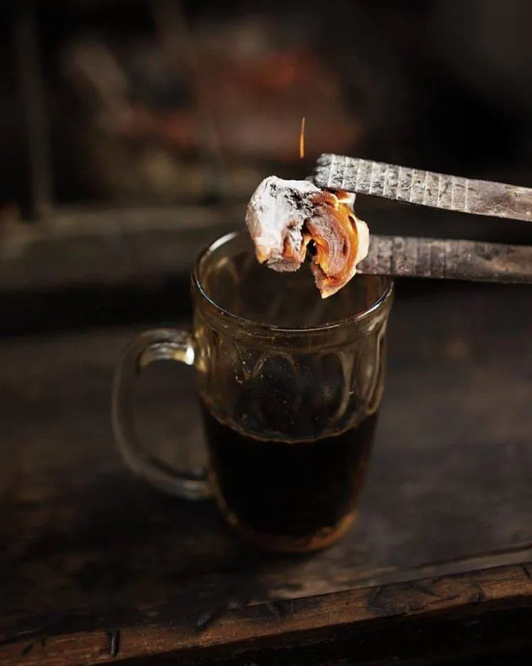 เครื่องดื่มสุดแปลกจากอินโดนีเซีย “กาแฟถ่านชาโคล” คีบถ่านร้อนๆ ในลงไปในแก้วกาแฟ!?