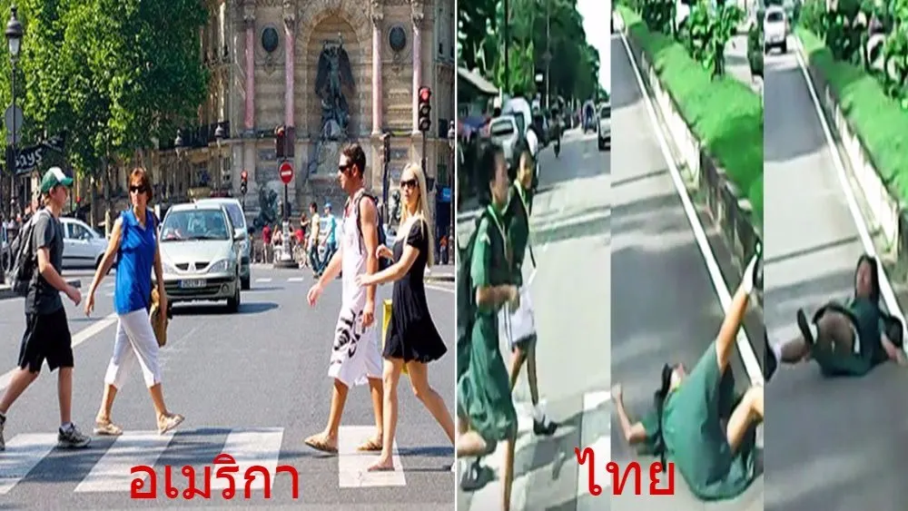 แปลกใจเลยว่า ทำไมจึงได้ข่าวคนอเมริกันถูกรถชนขณะข้ามถนนที่บ้านเราอยู่บ่อยๆ ทั้งนี้เพราะแนวทางปฎิบัติในการข้ามถนนของเรากับของเขาต่างกันมาก ของเราต้องรีบวิ่งข้าม เพราะถ้าเดินชมทุ่งไปข้ามไป ก็มีสิทธิถูกรถชนได้ ดังนั้นถ้าเพื่อนๆมีคนรู้จักที่เป็นคนอเมริกัน และวางแผนจะมาเที่ยวที่เมืองไทย ก็ควรบอกคนอเมริกันคนนั้นให้ตระหนักถึงเรื่องนี้ด้วย หรือไม่ก็บอกให้ใช้สะพานไปเลย ก็จะปลอดภัยกว่า