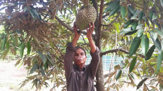 วันที่ 12 มิ.ย.60 ที่บ้านกกแหนใหม่ ต.นาดี อ.ด่านซ้าย จ.เลย ผู้สื่อข่าวรายงาน ภายหลังชาวบ้านลองผิดลองถูกปลูกต้นทุเรียนหมอนทองมากว่า 5 ปี จนเป็นผลสำเร็จ ออกผลทั้งต้นลูกโต เนื้อแน่น อร่อยน้ำหนักตกลูกละ 3-4 กิโล ถูกจองหมดต้นแล้ว เจ้าของเองก็ยังไม่ได้ชิมเลย