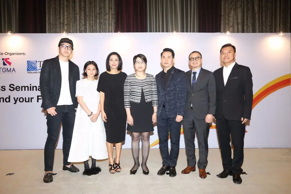 โซเฟียร์ ชง (ที่ 4 จากขวา) ผู้ช่วยผู้อำนวยการบริหาร องค์การสภาพัฒนาการค้าฮ่องกง (HKTDC) จัดการสัมนาเกี่ยวกับธุรกิจแฟชั่น และการเสวนาจากผู้เชี่ยวชาญทางด้านแฟชั่นและเครื่องนุ่งห่ม ในหัวข้อ “How to Seize Opportunities to Expand Your Fashion Business” ให้กับตัวแทนผู้ประกอบการไทยกว่า 100 ราย โดยมี ปีเตอร์ หว่อง ผู้อำนวยการประจำภาคพื้นเอเชียตะวันออกเฉียงใต้และอินเดีย HKTDC พร้อมด้วย ถาวร กนกวลีวงศ์ นายกสมาคมอุตสาหกรรมเครื่องนุ่งห่มไทย ดร.ชาญชัย สิริเกษมเลิศ ผู้อำนวยการสถาบันพัฒนาอุตสาหกรรมสิ่งทอ มยุรี ชัยพรหมประสิทธิ์ รองกรรมการผู้จัดการใหญ่อาวุโส สายงานส่งเสริมการตลาด บริษัท สยามพิวรรธน์ จำกัด และพงศ์ศักดิ์ ศุภรัชชีพ เจ้าของแบรนด์และนักออกแบบแฟชั่น บริษัท เดอะ รสนิยม จำกัด ร่วมงาน เมื่อเร็ว ๆ นี้ ณ ห้องแอสเธอร์ ชั้น 14 โรงแรมเดอะ เซนต์ รีจิส กรุงเทพฯ