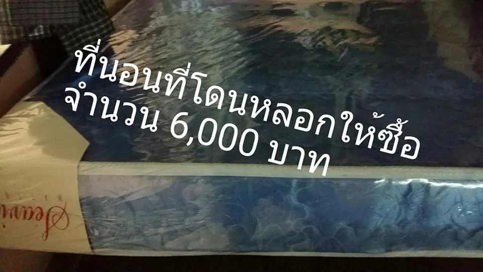 มีอยู่วันหนึ่งมีคนมาขายที่นอนถึงบ้านตาบอกว่าไม่เอาไม่มีเงินซื้อ มันก็เอามาวางแล้วบอกว่า 6,000 บาท