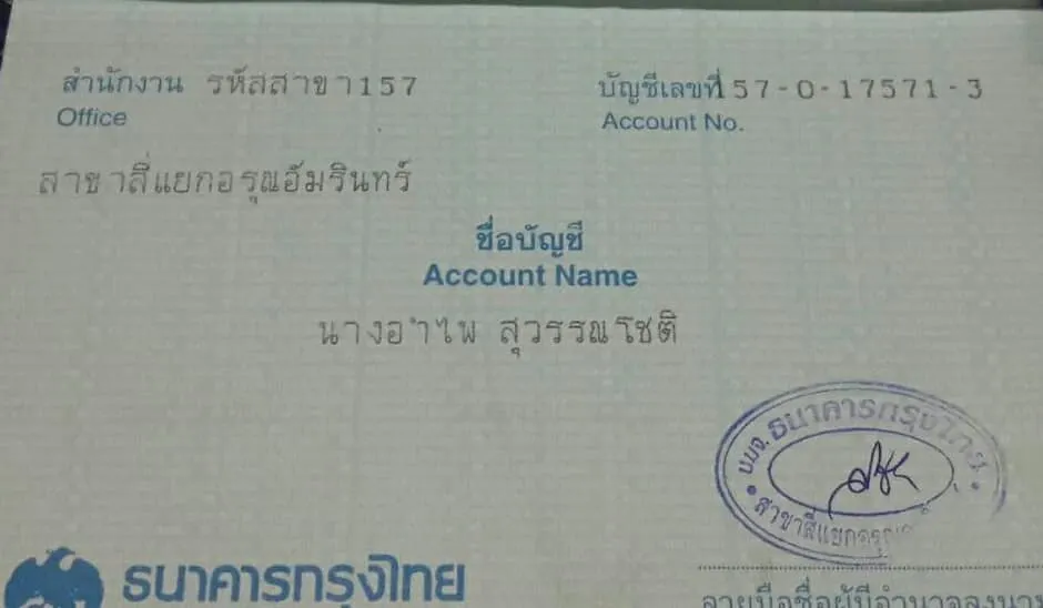 ชื่อบัญชี นาง อำไพ สุวรรณโชติ