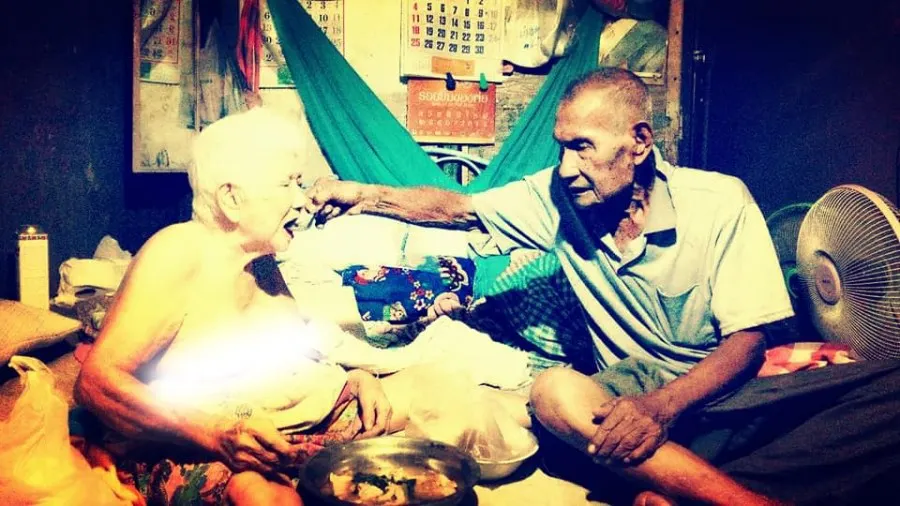 เมื่อเมศเดินทางมาถึงพบภาพของคุณตาที่นั่งป้อนข้าวให้ภรรยาตัวเอง