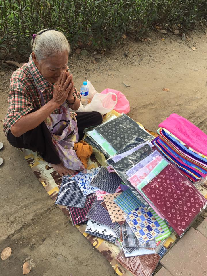 หลังจากคุณยายแกบอกราคาเสร็จเราก็ตัดสินใจซื้อผืนเล็กมา 1 ผืน คุณยายพูดไปเสียงสั่นคล้ายจะร้องไห้บอกกับเราว่าอย่าว่ายายนะลูกยายขายแพงใช่ไหม ลูกยายรับจ้างเขาลูก ยายไม่มีเงิน ยายมีโรคประจำตัว และยายก็หยิบยาที่เหลือน้อยมากๆให้เราดู