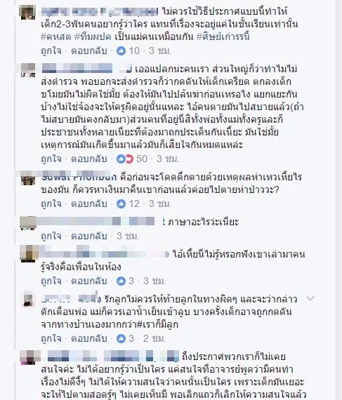 ตอนนี้คุณครูที่โดนหาว่าประจานเด็กเครียดมากเลยค่ะ จริงๆครูแกเป็นคนที่ใจดี เป็นคนตลกค่ะ ถ้าไม่มีคนทำผิดแกจะไม่ดุเลย เมื่อเช้าครูคนนั้นก็ไปยืนตรงที่นักเรียนคนนั้นกระโดดลงมา แล้วก็ร้องไห้โฮ ครูเสียใจจริงๆค่ะควีน รวมถึงไม่ยอมขึ้นไปพูดที่หน้าเสาธงเหมือนเคย แล้วครูยังโดนห้ามไม่ให้ไปงานศพด้วยค่ะ หนูสงสารครูมากๆ ครูเป็นคนดี