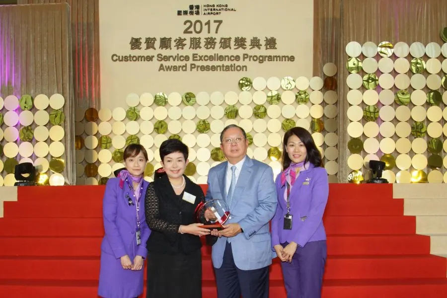 ที่บริหารจัดการการตรวจบัตรโดยสารได้อย่างรวดเร็วและมีประสิทธิภาพ "Best Check-in Service Award-Waiting Time in Check-in Queue" และ ประกาศนียบัตรการให้ความร่วมมือระหว่างหน่วยงานดีเด่น “Cross-company Excellence Award - Certificate of Appreciation” ที่ท่าอากาศยานนานาชาติฮ่องกง จาก ดร.ปีเตอร์ แลม ประธานคณะกรรมการการท่องเที่ยวฮ่องกง ในพิธีมอบรางวัล “HKIA Customer Service Excellence Programme Award Presentation 2017” โดยมีผู้บริหาร และพนักงานการบินไทย ร่วมในพิธี ณ Coach Hall Terminal 2 ท่าอากาศยานนานาชาติฮ่องกง