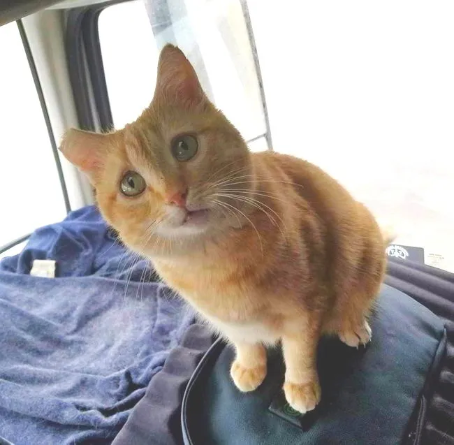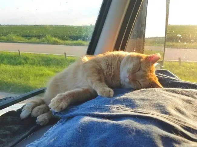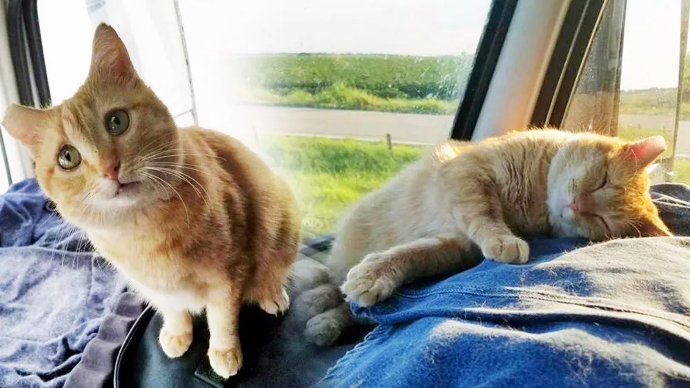 เหมียวส้มตาละห้อย อ้อนให้คนขับรถบรรทุกพามันไปเที่ยวด้วย ก่อนจะหลับตลอดทริปซะงั้น