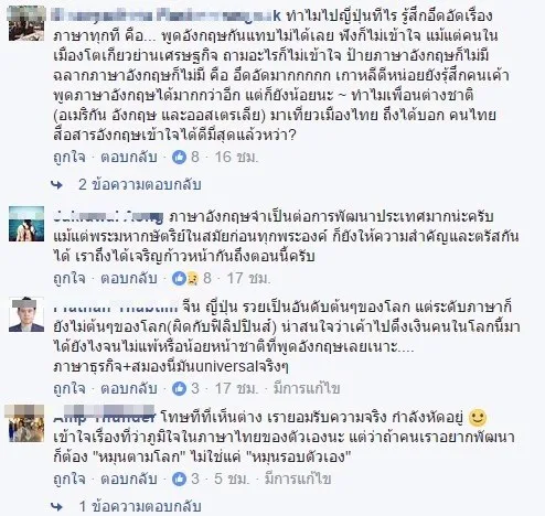 รายงานดัชนีวัดระดับความสามารถในการใช้ภาษาอังกฤษของแต่ละประเทศ ประจำปี 2016 (EF English Proficiency Index Score 2016) พบว่าประเทศไทยมีคะแนนอยู่ที่ 47.2 ซึ่งจัดอยู่ในระดับที่ต่ำมาก เมื่อเทียบกับค่าเฉลี่ยของทวีปเอเชียที่คะแนน 55.94