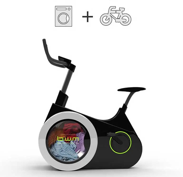 ได้ทั้งออกกำลังกายและซักผ้าไปพร้อมกัน เยี่ยมจริงๆ ประหยัดพลังงานด้วยน่ะครับ แถมตัวเคร่องยังถูกออกแบบให้สามารถนำเอาแรงปั่นไปผลิตเป็นกระแสไฟฟ้าเพื่อนำมาใช้แสดงผลของหน้าจอสถานะต่างๆ รวมถึงเก็บไฟฟ้าไว้ใช้ซักครั้งหน้าก็ได้ เยี่ยมจริงๆ