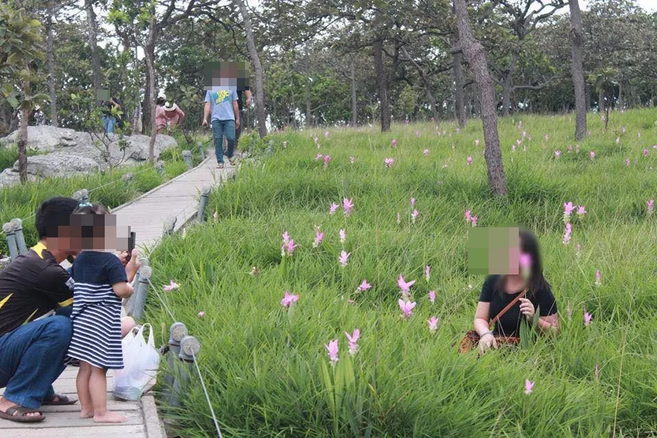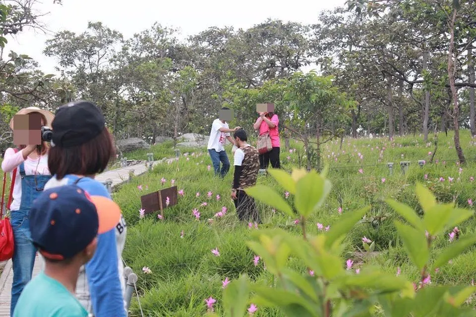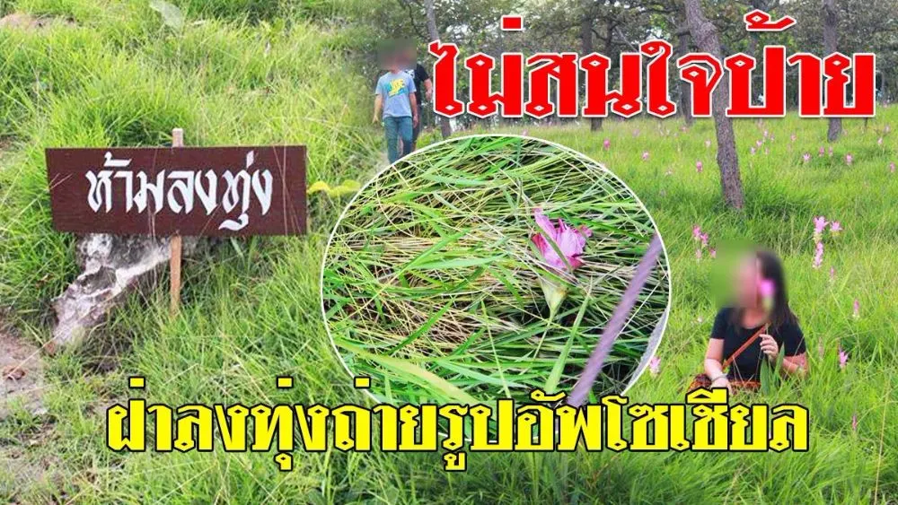 นักท่องเที่ยวฝ่าฝืนแห่ลงไปถ่ายรูป ดอกกระเจียว อัพรูปลงโซเชียลเก๋ๆไม่สนใจป้าย"ห้ามลงทุ่ง"