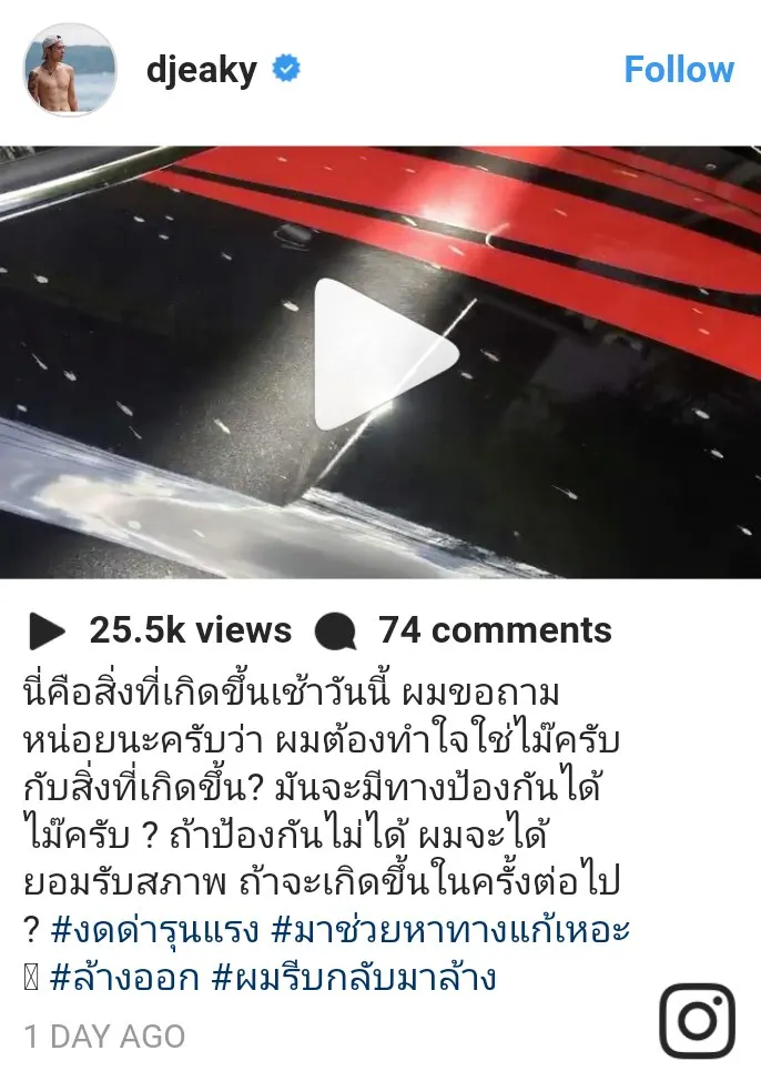 “ขอบคุณทีมงานที่มาช่วยล้างรถให้ ซึ่งมันเกิดจากความชุ่ยไม่รับผิดชอบของบริษัทก่อสร้างที่ควรมีต่อประชาชนตาดำๆ ขุดเจาะอุโมงค์ทางแยกพัฒนาการจนดินผสมปูนกระเด็นมาโดนรถครึ่งคันด้านขวา สรุปล้างก็ยังมีคราบ ไม่รู้ว่าไปคาร์แคร์จะหลุดป่าววว ซวยไม่ว่า แต่ห่วงเรื่องความปลอดภัยโว้ย นี่แค่ดินปูน ต่อไปล่ะ อะไร ฝากด้วยนะผู้เกี่ยวข้อง ขอบคุณช่อง 3 ด้วยนะครับที่มาถามไถ่ด้วยความเป็นห่วง #ไม่ต้องมารับผิดชอบค่าล้างครับ #แค่รับผิดชอบหาทางป้องกันให้จะดีที่สุดครับ”