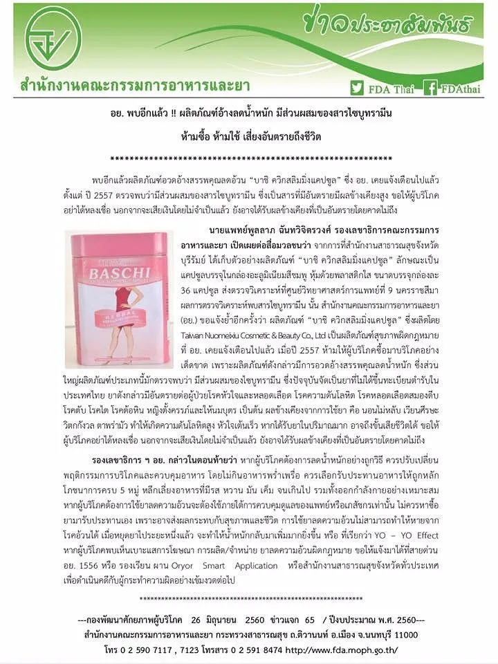 อย.เตือน!! อาหารเสริมลดอ้วน"บาชิ" มีส่วนผสม สารไซบูทรามีนอย่ากิน มันอันตราย! ใครขายผิดกฏหมาย!!