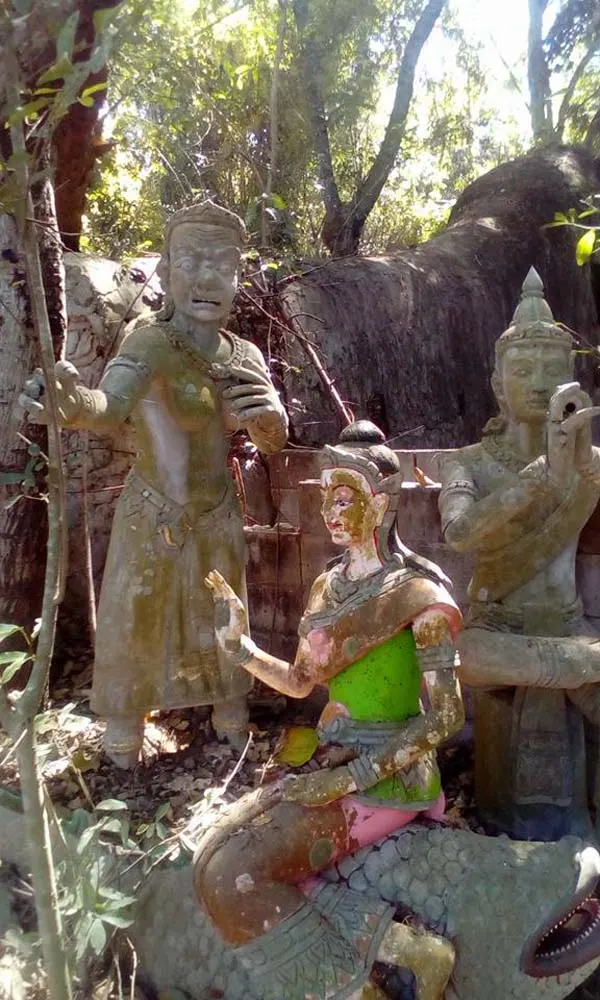 สถานที่แห่งนี้หลายๆคนเรียกว่าวัดร้าง แต่แท้จริงแล้วคือสำนักสงฆ์ร้าง อยู่ในพื้นที่ อ.พนมสารคาม จ.ฉะเชิงเทรา ผู้อยู่ในพื้นที่ระแวกนั้นเล่าว่า พื้นที่บริเวณนี้เป็นมรดกตกทอดจากบิดาของพระอาจารย์ซ่วน ปัญญาธโล อดีตเจ้าอาวาสวัดท่าลาดใต้ พระเกจิดังเรื่องปลัดขิกเมื่อหลายสิบปีก่อน แต่เนื่องจากท่านเป็นพระที่มุ่งปฏิบัติสมาธิภาวนา “กสิญสิบ” สื่อสารกับดวงวิญญาณ-ภูตผี จนทำให้ไม่มีเวลาปฏิบัติกิจของสงฆ์ จึงลาสิกขาบท ออกมาตั้งสำนักสงฆ์แห่งนี้ จากนั้นมาพระอาจารย์ซ่วนก็มุ่งมั่นปั้นรูปั้นต่างๆขึ้น เช่น กุมารทอง, นางกวัก, ตุ๊กตาเด็ก มีรูปปั้นนับร้อยที่พระอาจารย์ซ่วนได้ปั้นขึ้น มีการลงอักขระอาคมไว้ทั้งหมด บางตัวมีส่วนผสมของชิ้นส่วนคนตาย โดยเฉพาะผิวหนังของร่างคนตายที่สักยันต์ แต่เผาไม่ไหม้ จะถูกนำมาเป็นมวลสารในการปั้น และทุกตัวจะมีช่องสำหรับนำอัฐิคนตายบรรจุไว้ด้านใน หากญาติผู้เสียชีวิตแจ้งความประสงค์อยากให้วิญญาณสถิตอยู่ในรูปปั้นเหล่านี้ พระอาจารย์ซ่วนก็จะประกอบพิธีบรรจุอัฐิให้ จวบจนถึง พ.ศ. 2536 พระอาจารย์ซ่วนได้มรณภาพลง ตั้งแต่นั้น สถานปฏิบัติธรรมแห่งนี้ก็ไร้พระสงฆ์เข้ามาจำวัด หลายครั้งที่ทางวัดให้พระสงฆ์เข้ามาฟื้นฟูสถานที่ แต่ไม่เคยมีพระรูปไหนอยู่ได้ อ้างพบเห็นสิ่งที่ชวนพิศวง ทั้งงูยักษ์เลื้อยผ่าน ได้ยินเสียงดังแปลกๆ คล้ายเสียงคนพูดคุยกัน จนสุดท้ายจำเป็นต้องปล่อยให้ทิ้งร้าง
