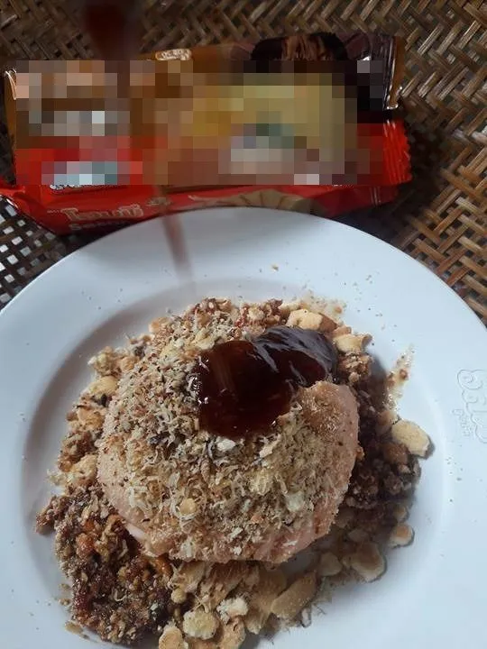 ขนมปังกรอบรสงาขาวบดพอหยาบโรยบนกระท้อน จากนั้นราดด้วยน้ำราดกระท้อนสูตรโบราณ!!! อะไรนะขนมปังกรอบหรา??