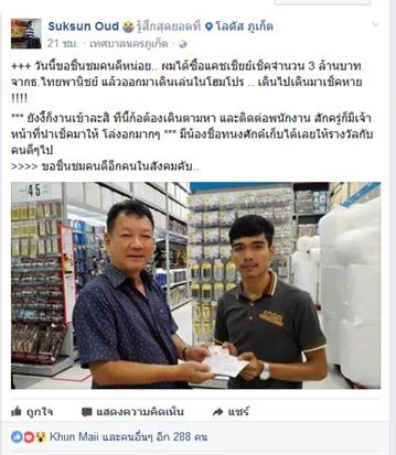 “คนดีที่น่าชื่นชม !!! พนักงานโฮมโปร เก็บแคชเชียร์เช็คมูลค่ากว่า 3 ล้าน ส่งคืนเจ้าของ”