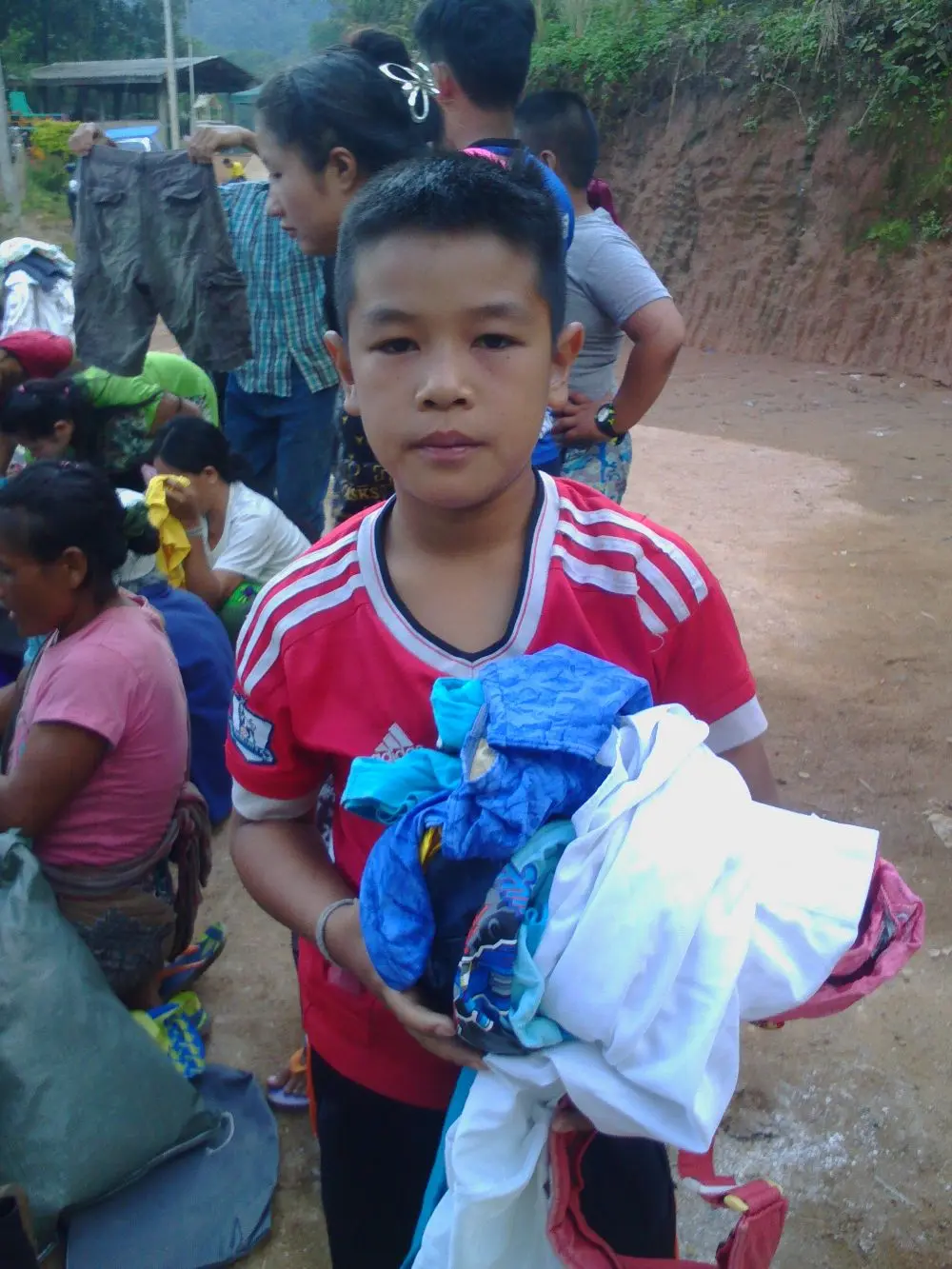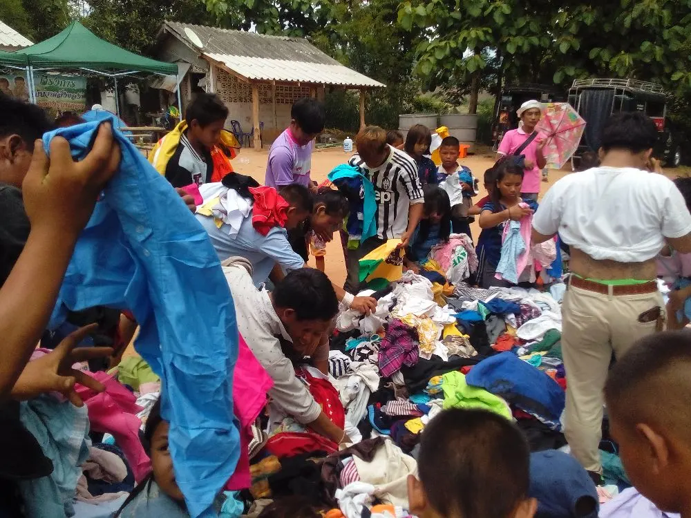 เพราะถือว่าผิดจารีตประเพณีของหมู่บ้าน ซึ่งเสื้อผ้าที่เขาใส่ก็จะมีแค่ เสื้อยืด กางเกงยีนส์ กางเกงวอร์ม กางเกงกีฬา ชุดของชนเผ่า เสื้อเชิ้ตแขนยาวสำหรับใส่กันแดดเวลาทำไร่ทำสวนเท่านั้นครับ ทางกลุ่มจะแยกเสื้อผ้าเป็น 2 ส่วน คือส่วนที่ 1 เสื้อผ้าสวยงามที่ชาวดอยไม่ใส่ทางเราจะนำไปเปลี่ยนสภาพเป็นรายได้เพื่อจัดกิจกรรมและจัดซื้อสิ่งของให้กับเด็กๆ และส่วนที่ 2 ที่เขาใส่กันบนดอยจะนำไปมอบให้กับชาวบ้านและเด็กๆ บนดอยครับ