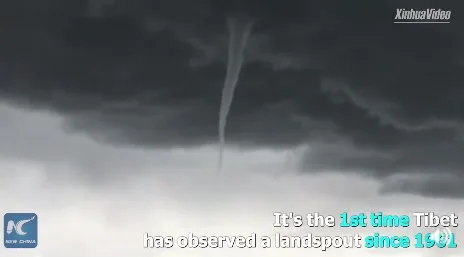 กลุ่มเด็กนักเรียนในอำเภอตางสยง เขตปกครองตนเองทิเบตทางตะวันตกเฉียงใต้ของจีน พากันออกมาดูพายุงวงช้างที่กำลังหมุนวนอย่างรวดเร็วอยู่บนท้องฟ้าเมื่อไม่นานนี้ โดยพายุดังกล่าวซึ่งปรากฏตัวอยู่นานราวสิบนาทีนับเป็นพายุงวงช้างลูกแรกของทิเบตในรอบ 56 ปี