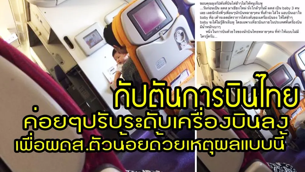 แต่ในกรณีที่มีเด็กๆในเครื่ องบิน บางครั้งเด็กๆไม่สามารถปรับ ความดันในร่างกายได้รวดเร็ว เท่าผู้ใหญ่ ดังนั้นน้องๆจึงมีอาการปวดห ูบ้าง จึงร้องไห้เพราะเด็กๆไม่สาม ารถสื่อสารได้ หรือปรับตัวได้ทันเหมือนผู้ ใหญ่ ดังนั้นพี่ๆกัปตันไทยที่มาก ประสบการณ์ต่างเคยผ่านประสบ การณ์แบบนี้มาก่อน จึงเลือกวิธีการค่อยๆไต่ระด ับ เพื่อให้น้องๆไม่ต้องปรับคว ามดันในหูแบบทันทีมากนัก