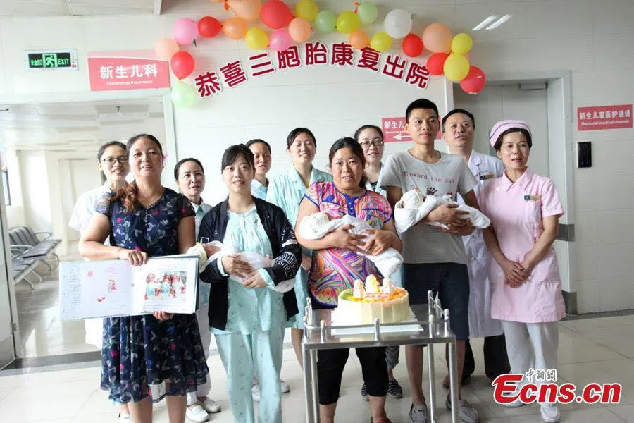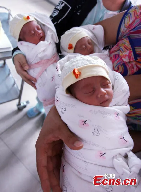 วานนี้ (4 ก.ค.) สตรีจีนวัย 22 ปี ในนครเฉิงตู เมืองเอกของมณฑลเสฉวนทางตะวันตกเฉียงใต้ กลายเป็นคุณแม่มือใหม่หลังจากให้กำเนิดแฝดเหมือนสามคน โดยทารกเพศหญิงทั้งสามมีสุขภาพแข็งแรง น้ำหนัก 1,760 1,360 และ 1,670 กรัมตามลำดับ