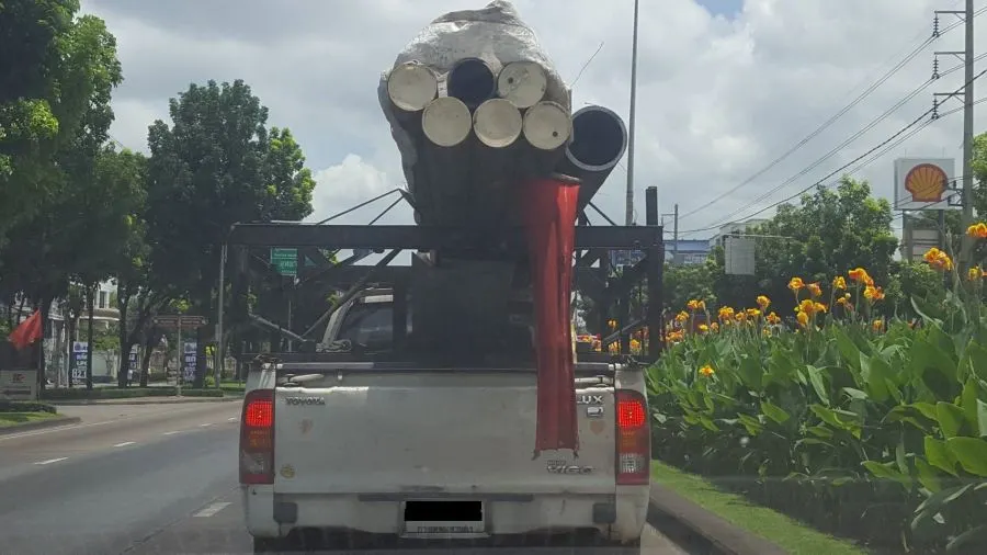 เห็นตามหลังรถส่งของแบบในภาพนี้ไหม?ครับ เคยขับไปจิตนาการไปว่าของที่อยู่ท้ายรถจะไหลมาทิ่มเราไหม?? สมาชิกเวบไซต์พันทิปได้ตั้งกระทู้ขึ้นมาชื่อกระทู้ เลิกเถอะครับ.. การขนส่งมักง่ายแบบนี้ โดยโพสท์ระบุว่า ทุกวันนี้ตามบริษัทหรือร้านขายวัสดุอุปกรณ์ก่อสร้างช่างต่างๆ เวลาขนของส่วนมากจะเป็นรถแบบนี้
