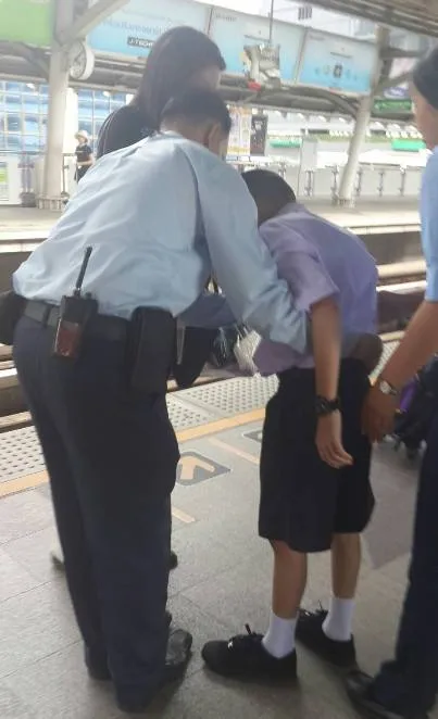 รปภ.ไหวพริบดี กดปุ่มหยุดรถได้ทัน ช่วยเด็ก น.ร.ขาติดร่องรถไฟฟ้า ขณะก้าวลงจากรถ