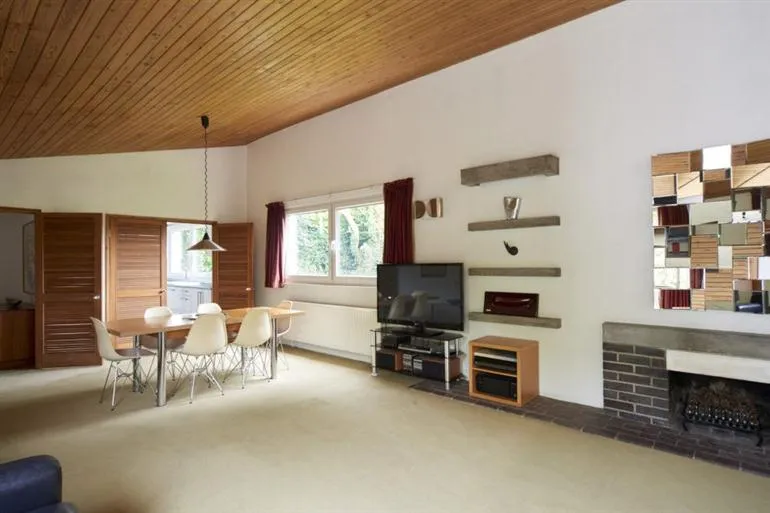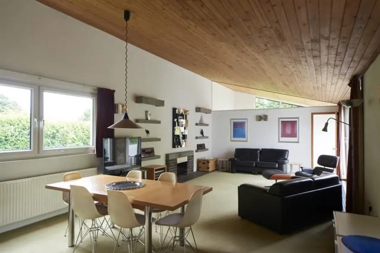 เป็นอีกหนึ่งแบบบ้านสวยน่าอยู่สำหรับ บ้านชั้นครึ่งท่ามกลางสวนป่าหลังนี้ ตัวบ้านตั้งอยู่กลางเนินเขา ล้อมรอบด้วยพรรณไม้เขียวขจี ได้กลิ่นอายของธรรมชาติแบบเต็มร้อย ตัวบ้านมีโครงสร้างหลักเป็นคอนกรีต ออกแบบเป็นรูปทรงกล่องสี่เหลี่ยมเรียบง่าย แต่มีการลดทอนตัวผนังให้มีลูกเล่นดูทันสมัย เน้นกระจกบานใหฐ่เพื่อให้รับแสงจากธรรมชาติได้ดี เพิ่มความสว่างในตัวบ้านช่วยประหยัดพลังงานด้วย