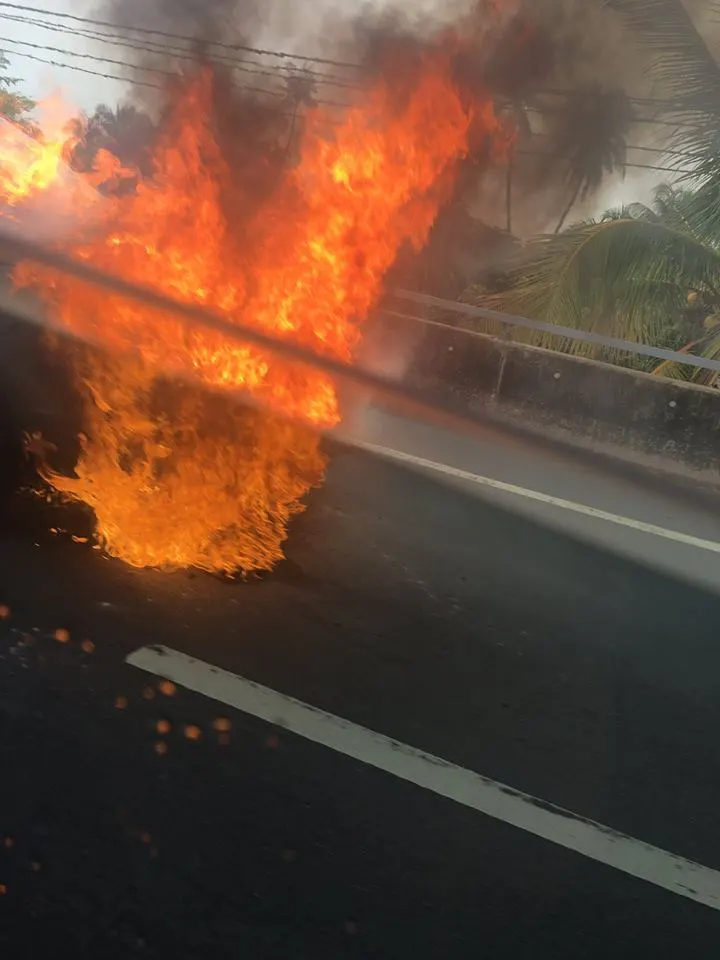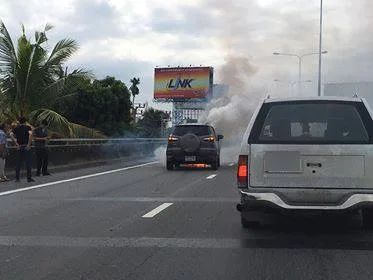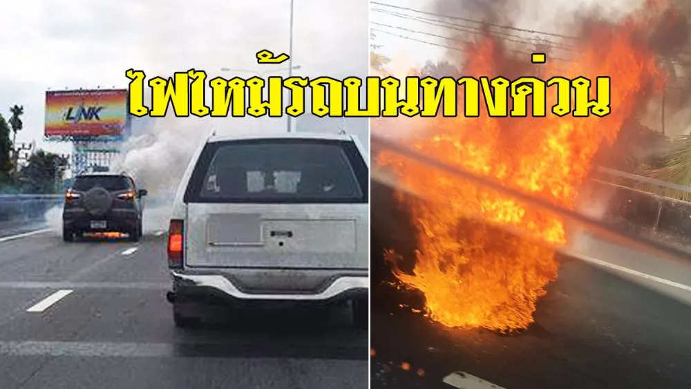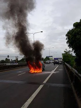 เกิด อุบัติเหตุ รถเก๋งเกิดไฟลุกไหม้ บนทางด่วนทางช่วงเลยด่านดาวคะนอง จนท.ปิดการจราจร
