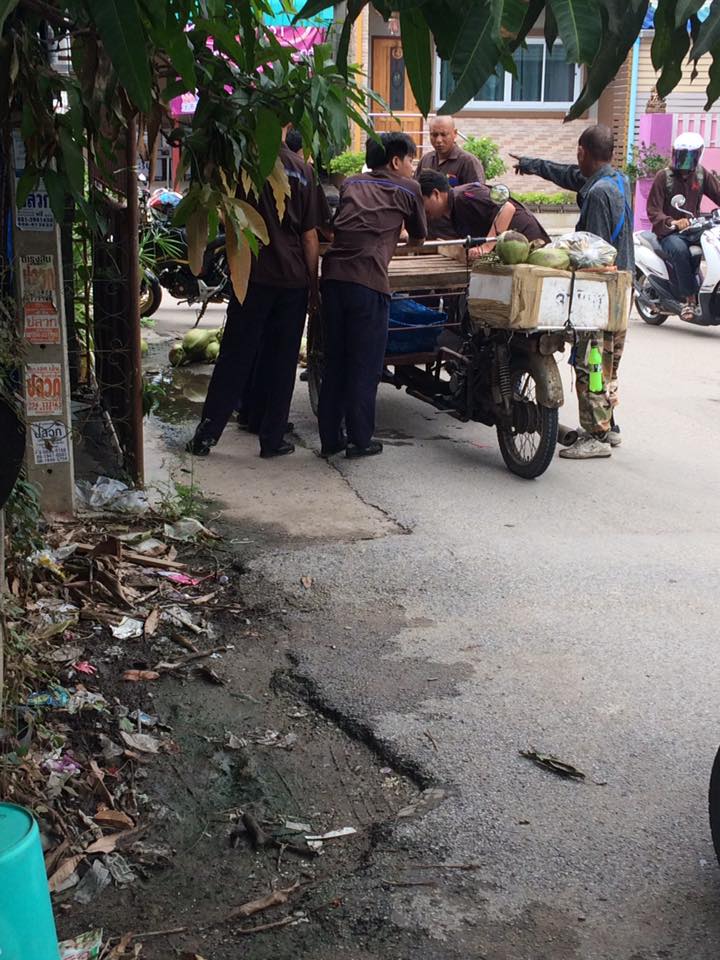 💫พอดีคุณลุง3ล้อ ขนมะพร้าวมา แล้วถนนตรงบริเวณนั้นมันเป็นเนินและมีหลุม รถ3ล้อคุณลุงเลยเทกระจาดแผงมะพร้าวหมดเลย น้องๆผ่านมาเลยช่วยกันซ่อมแผงมะพร้าวบนรถ3ล้อแล้วก็ช่วยกันจัดการเก็บมะพร้าวขึ้นให้คุณลุง