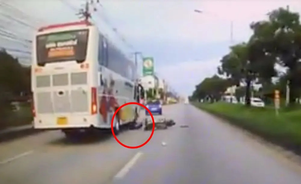 ใครผิด? เมื่อเก๋งสวิฟท์ชนกับมอไซค์ จนเกือบโดนล้อรถทัวร์ทับ