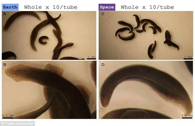 ความเปลี่ยนแปลงของหนอนตัวแบนที่ถูกส่งไปยังสถานีอวกาศ