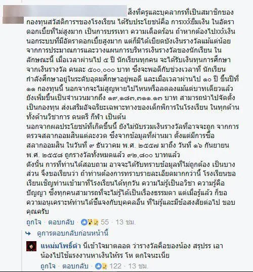 3. จัดตั้งเป็นกองทุนช่วยเหลือนักเรียนทุกคนในโรงเรียน