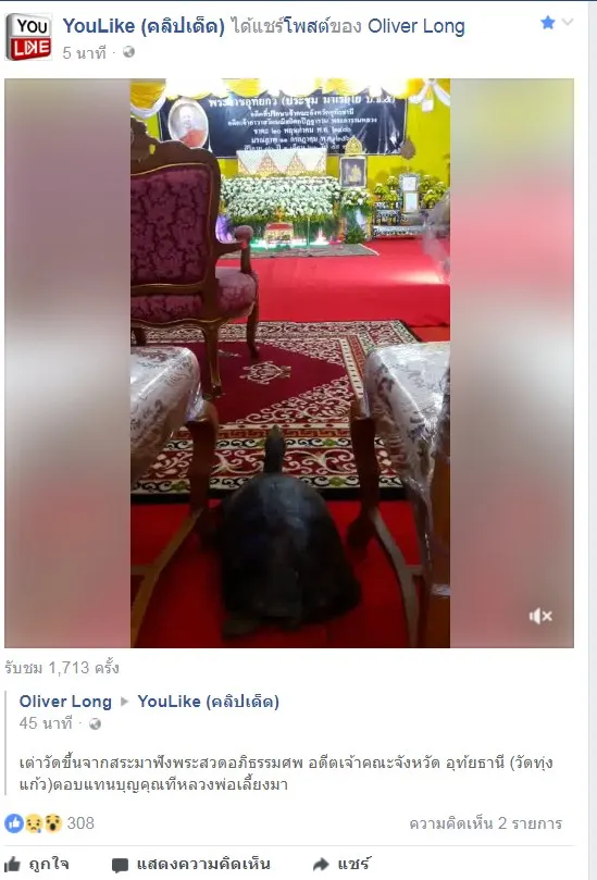 สุดอาลัย เต่าขึ้นจากสระมาฟังพระสวดอภิธรรมศพ ตอบแทนบุญคุณทีหลวงพ่อเลี้ยงมา
