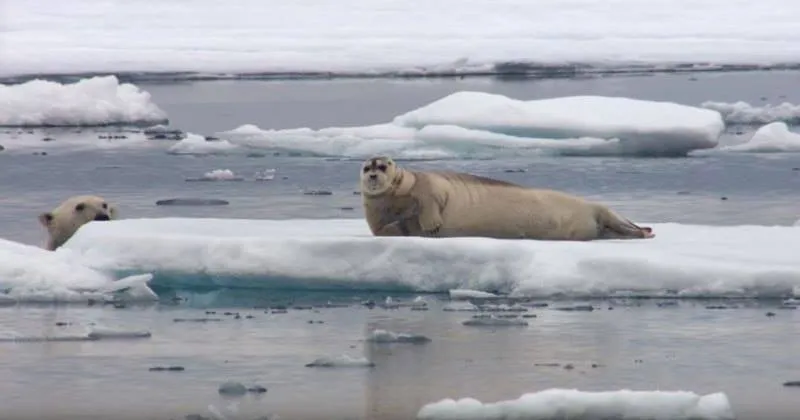 บีบีซีได้บันทึกภาพหมีขั้วโลกตัวหนึ่งที่หิวโหย มันเฝ้าเหยื่อและหลบซ่อนอยู่บริเวณแผ่นน้ำแข็ง โดยเหยื่อที่มันเฝ้ามองนั้นเป็นสิงโตทะเลขนาดใหญ่ที่นอนอยู่บนแผ่นน้ำแข็ง และไม่นานมันก็ตะครุบเข้าไป จากนั้นสิงโตทะเลก็ต้องตกเป็นเหยื่อของหมีขั้วโลก