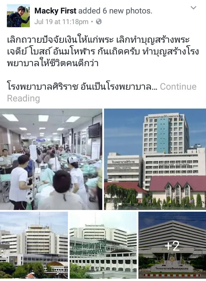 เลิกถวายปัจจัยเงินให้แก่พระ เลิกทำบุญสร้างพระเจดีย์ โบสถ์ อันมโหฬาร กันเถิดครับ ทำบุญสร้างโรงพยาบาลให้ชีวิตคนดีกว่าเยอะ
