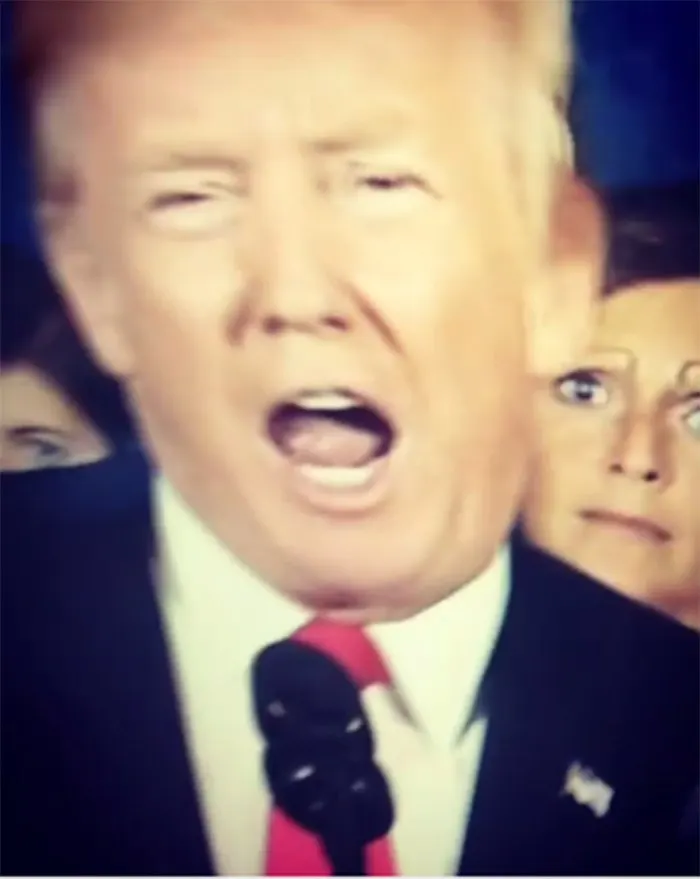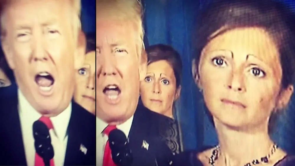 โลกออนไลน์เผยแพร่คลิปผู้หญิงคนหนึ่ง ที่อยู่ด้านหลังทรัมป์ขณะที่กำลังพูดหน้าจอทีวี แต่หลายคนไม่ได้สนใจในสิ่งที่ทรัมป์พูดสักเท่าไหร่