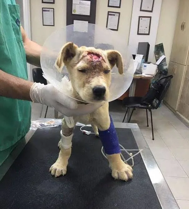 สุนัขข้างถนนที่ในตัวเต็มไปด้วยกระสุน