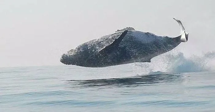 วาฬขนาดใหญ่กระโดดเหนือน้ำได้เหมือนลอยในอากาศ