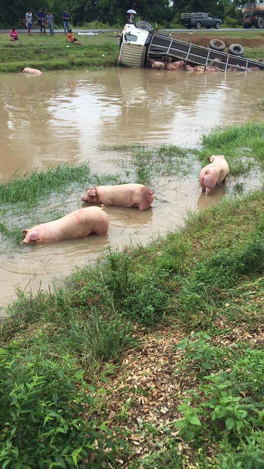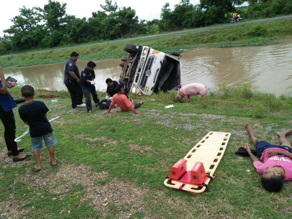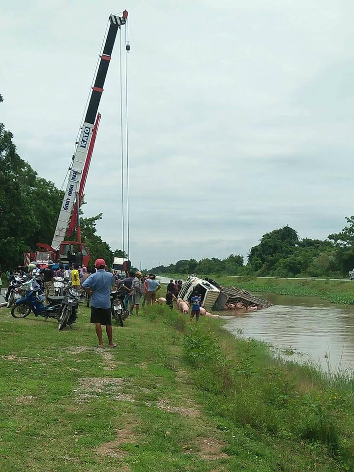 ด่วน!! รถหมูพลิกคว่ำลงคู่น้ำ จทน.อาสาเร่งเข้าช่วยเหลือหมู จ.สุพรรณบุรี (26'ก.ค.60)