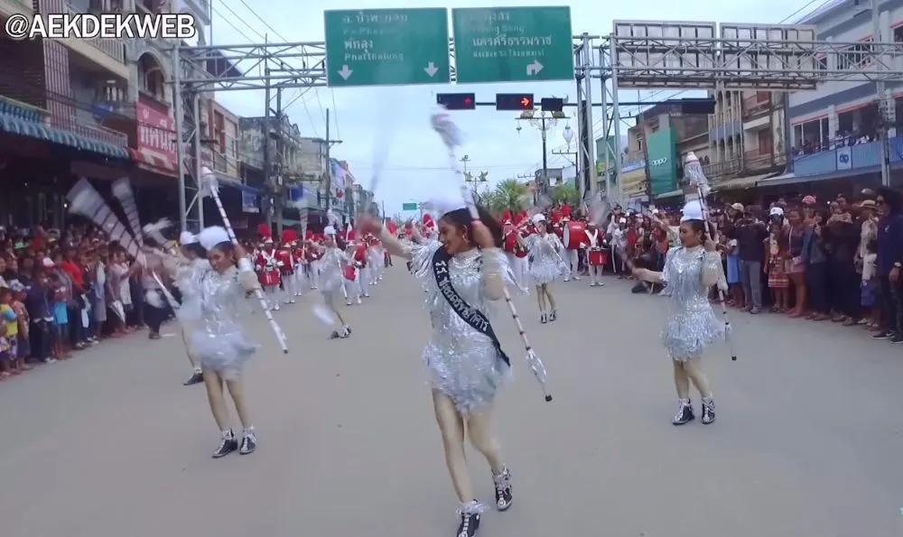 โชว์ดรัมเมเยอร์และวงโยธวาทิตโรงเรียนชะอวดวิทยาคาร มาพร้อมกับการควงคฑา2ไม้