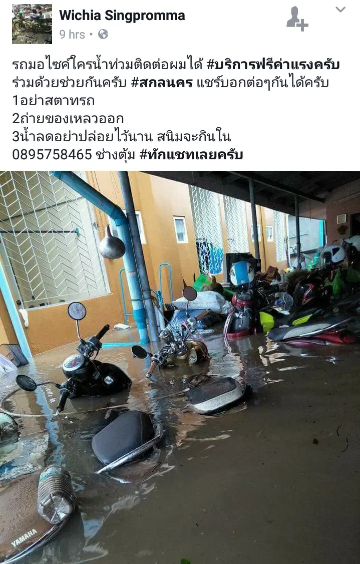 รถมอไซด์จมน้ำท่วม ช่างตุ้มฟรีค่าบริการซ่อม ส่วนรถยนต์ประกันชั้น 1 เท่านั้นได้เคลมประกันภัย
