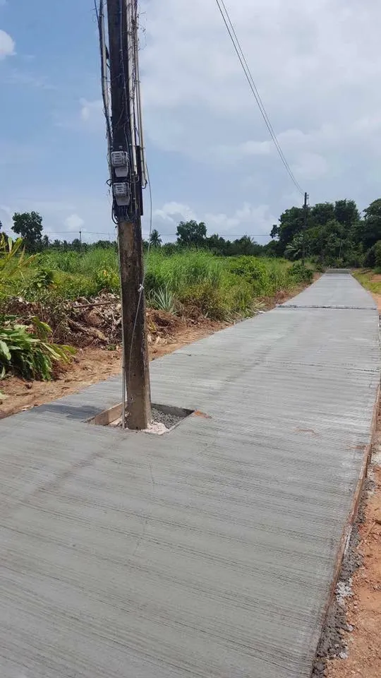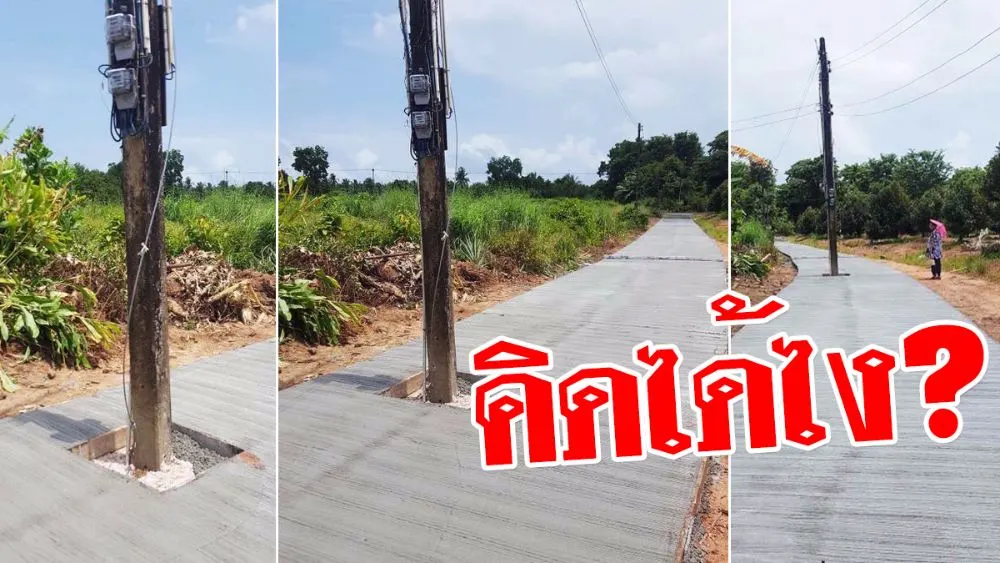 คิดได้ยังไง? ถนนคอนกรีตที่ทำใหม่ๆ ปูนยังไม่เเห้งสนิทดี แต่ที่สะดุดตาก็คือเสาไฟฟ้าโดดเด่นเป็นสง่า ที่ตั้งอยู่กลางถนนกันเลยทีเดียว คิดได้ยังไง? ย้ายเสาไฟฟ้าไหม? หรือมีวิธีอื่นที่ดีกว่านี้ไหม? หรือยังไง? แล้วคนใช้ถนนจะปลอดภัยไหม?