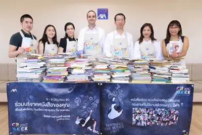 มร. มาร์ติน รูแอค กรรมการผู้อำนวยการ บริษัท แอกซ่าประกันภัย จำกัด เผยว่า “แอกซ่า ซีอาร์วีค เป็นหนึ่งใน ความทุ่มเทของกลุ่มแอกซ่าและพนักงาน ในการมีส่วนร่วมพัฒนาคุณภาพชีวิตให้ดีขึ้น โดยธีมปี 2560 คือ Better Lives Together จับมือเพื่อชีวิตดีๆ ไปด้วยกัน ด้วยการมอบสิ่งแวดล้อมในการทำงานอย่างมีความสุข มอบโอกาสให้พนักงานส่งต่อความสุข และตระหนักถึงความรับผิดชอบต่อสังคม ซึ่งจะนำไปสู่ความยั่งยืนในอนาคต สำหรับประเทศไทย จัดกิจกรรม “บริจาคหนังสือเพื่อน้องๆ” เชิญชวนพนักงาน เพื่อนบ้านร่วมอาคารและผู้สนใจทั่วไป บริจาคหนังสือเรียน นิตยสาร กระดาษที่ไม่ใช้แต่คงสภาพดี เพื่อมอบแก่โครงการอ่านสร้างชาติ มูลนิธิกระจกเงา ในการส่งต่อให้โรงเรียนและชุมชนที่ต้องการ เพราะเชื่อว่าหนังสือและการอ่าน มีส่วนร่วมสร้างความสำเร็จในการดำรงชีวิต และพัฒนาชีวิตให้ดีขึ้น”