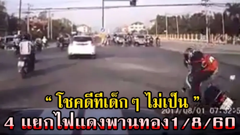 โชคดีที่เด็กๆ ไม่เป็นไร 4 แยกไฟแดงพานทอง 1/8/2560